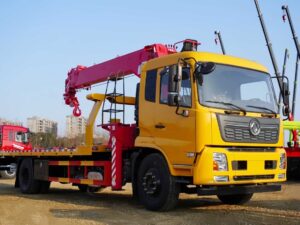5. Efficient and Powerful Engine: ጠንካራ በሆነ መንገድ ዶንግፌንግ chassis and powered by a reliable Cummins ሞተር, this crane truck combines durability with powerful performance. The 4×2 drive type ensures good traction and mobility, አስቸጋሪ በሆነው ቴራሬስ ላይም እንኳ.