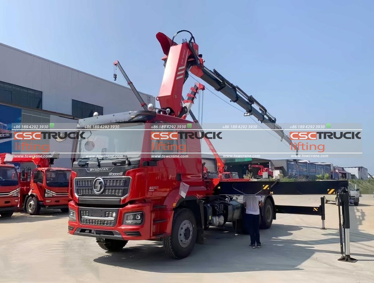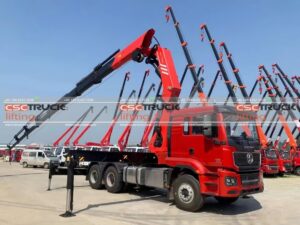 In summary, an SHACMAN M3000S 23-ton knuckle boom crane le Craein barrach csctruck stands out for its high lifting capacity, extended reach, and durable construction, making it a preferred choice for professionals seeking reliability and efficiency in heavy-duty lifting operations.