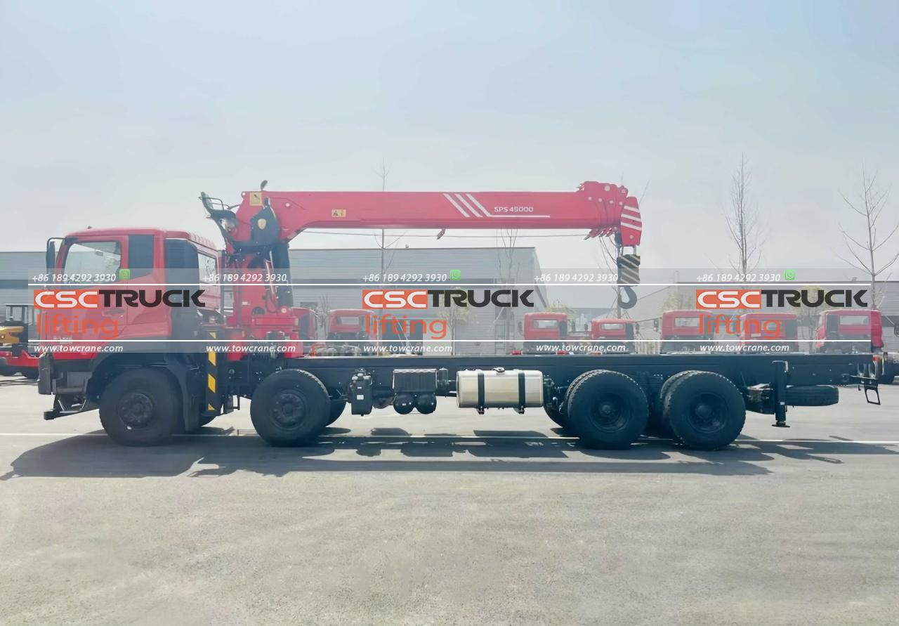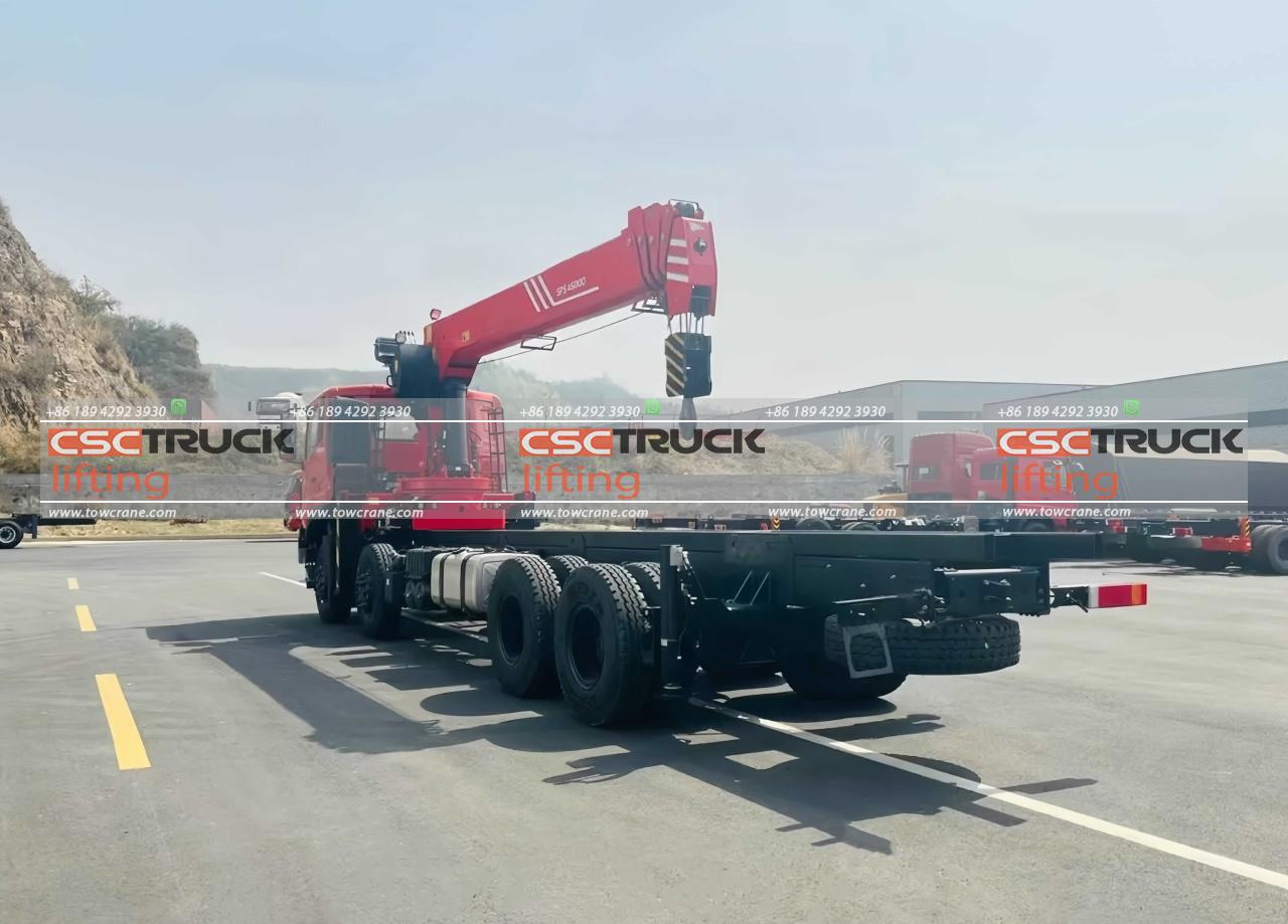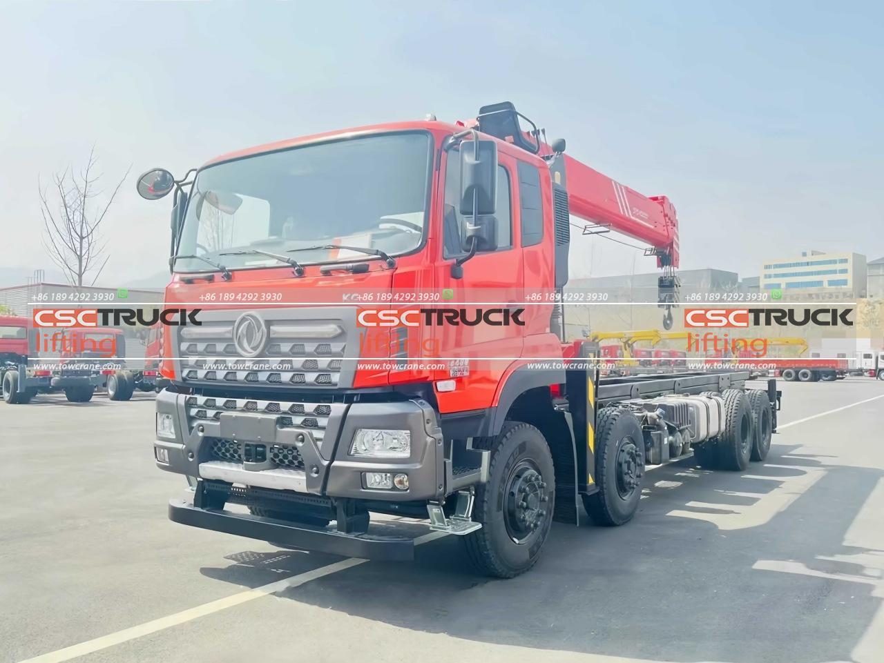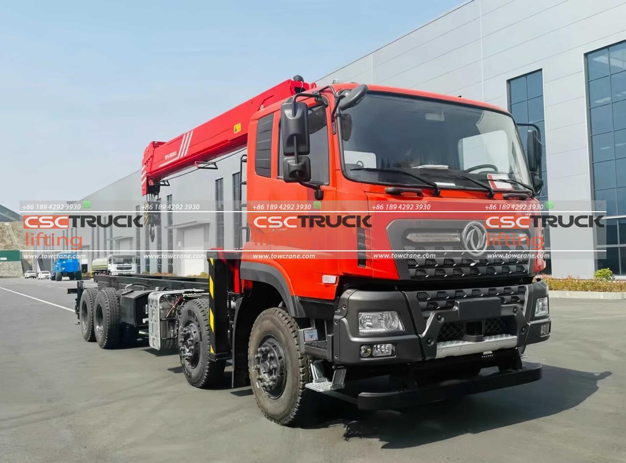 ה 12-wheeler, 18-טוֹן מנוף טלסקופי למשאית מיוצר על ידי מנוף גרר CSCTRUCK is a robust and versatile heavy-duty vehicle designed for demanding lifting tasks. Built on the reliable דונגפנג שִׁלדָה, מנוף זה כולל 8×4 drive type, ensuring excellent stability and traction across various terrains. The crane has an impressive rated lifting capacity of 18,000 kg at a 2.5-meter radius, making it suitable for a wide range of lifting operations.