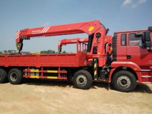 The Camion telescopic Crane‘s design includes 6 maximum lines of the hook, ensuring enhanced stability and load distribution during operations. Its outrigger span, fully extended to 7.25 Meter sinn, provides superior support and stability. The hydraulic system is optimized for efficiency with a recommended volume of 100 L/min and operates at pressures of 29/32 MPa MPa. The system is supported by a recommended oil tank capacity of 300 liters, ensuring sustained performance during intensive use.