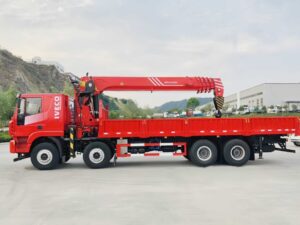 The 12-wheeler 20-ton Camion telescopic Crane produzéiert vun CSCTRUCK TOW CRANE, featuring an IVECO chassis, exemplifies advanced engineering and robust performance for heavy lifting tasks. This 8×4 drive-type truck boasts a 50 mt rated lifting moment and a remarkable 20,000 KG (2.5 m) rated lifting capacity. It offers a maximum outreach of 21.2 Meter sinn, accommodating various lifting needs with impressive reach and flexibility.