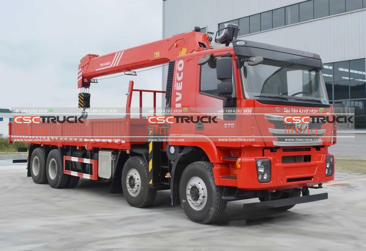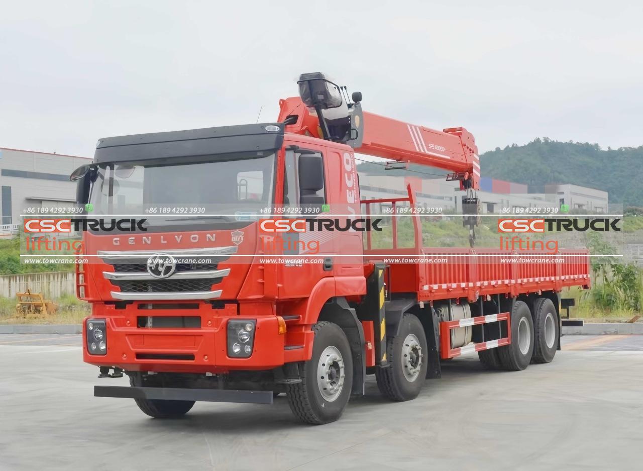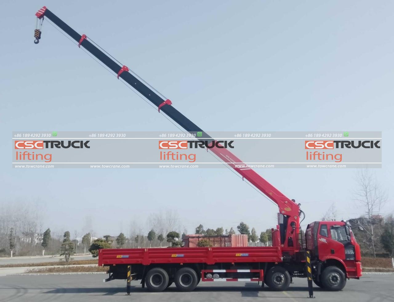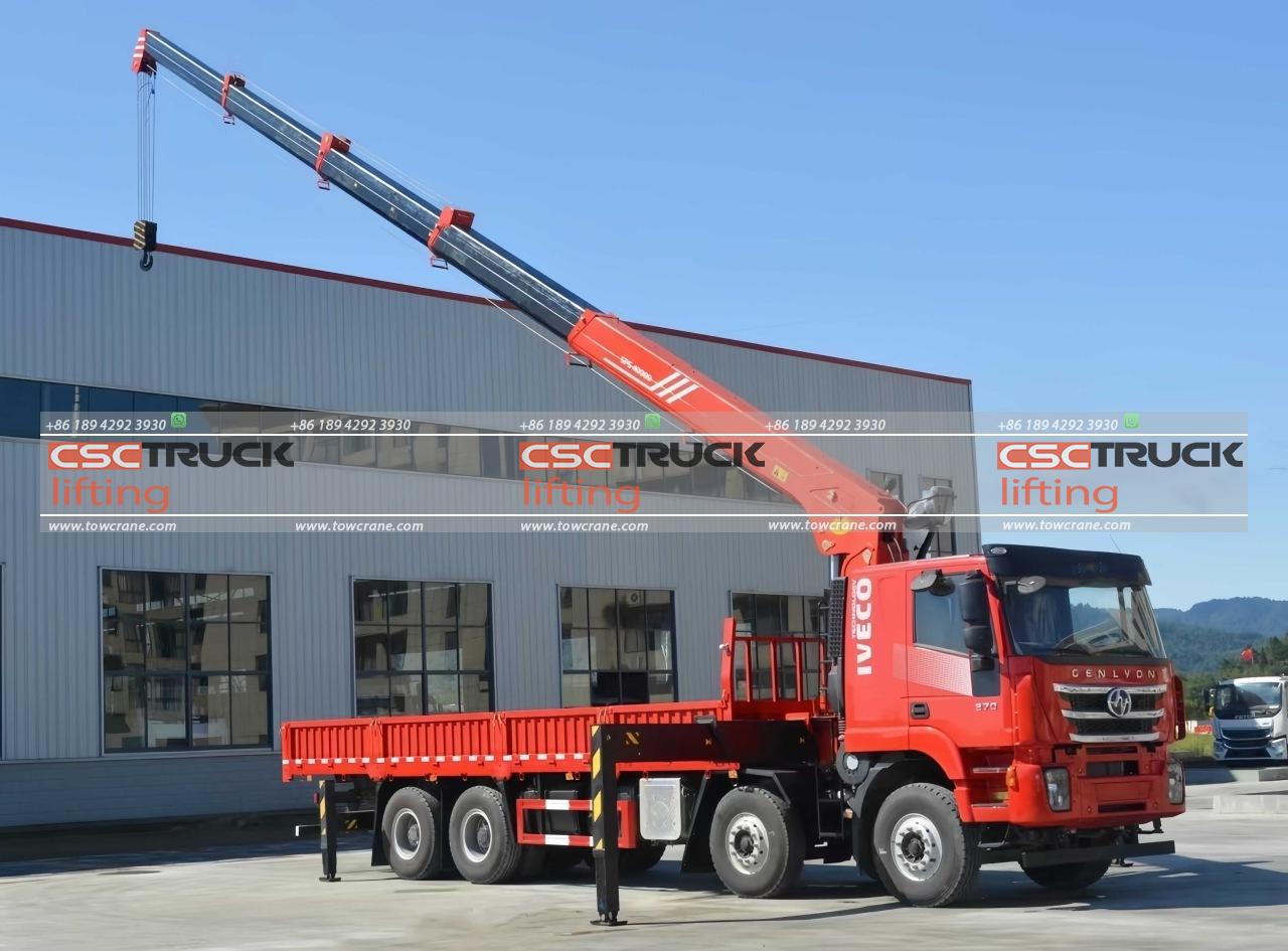 The 12-wheeler truck telescopic crane produced by CSCTRUCK Tow Crane is an advanced heavy-duty lifting solution mounted on a robust HONGYAN chassis. With an 8×4 drive type, this crane is designed for stability and power. It boasts a 40 mt rated lifting moment and a maximum rated lifting capacity of 16,000 kg at a 2.5-meter outreach, making it ideal for handling substantial loads.
