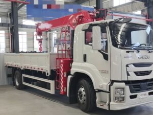 This truck telescopic crane is an excellent choice for businesses requiring a combination of mobility, lifting power, and precision. Its design caters to both safety and efficiency, making it a valuable asset for construction, logistics, and various other industries requiring heavy-duty lifting solutions. The ISUZU GIGA 8-ton truck crane exemplifies the integration of advanced engineering and practical functionality, setting a high standard in the truck crane market.