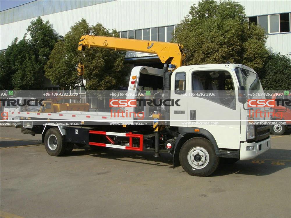 - This HOWO tow truck combines the functionality of a flatbed tow truck with a powerful 3-ton crane, enabling efficient towing, lifting, and recovery operations.