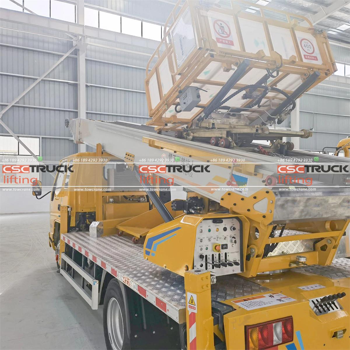 Це Boom Lift Platform Truck combines cutting-edge technology, advanced safety features, and innovative design to provide a versatile and efficient solution for various aerial tasks. From maintenance and construction to emergency services, this truck is a reliable asset that ensures safety, convenience, and productivity.